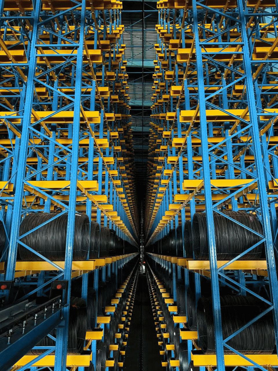 對于盤卷的規格,該立體庫支持的最大直徑為1.35米,長度為2米,單卷重量可達2.4噸。在庫存方面,立體庫擁有42368個貨位,總庫存量約為8.9萬噸。